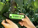 Plant relative chlorophyll concentration is measured by inserting a leaf into the device aperture.