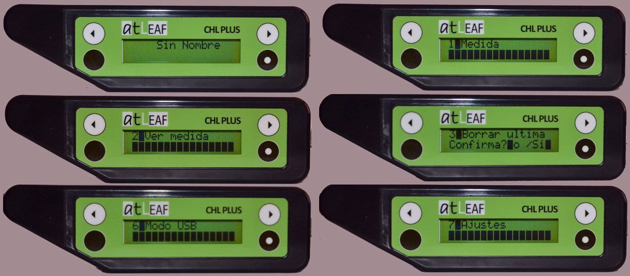 Below are some examples with pictures of the atLEAF CHL PRO device with different display languages shown.